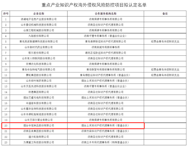 ɽ¶«Ê¡Öص㹤ҵ֪ʶ²úȨÍâÑóÇÖȨΣº¦·À¿ØÏîÄ¿ÈÏÃüÃûµ¥