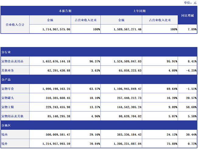2023ÄêÉϰëÄ꣬£¬£¬£¬£¬£¬£¬¹«Ë¾¾³ÄÚÖ÷ÓªÓªÒµÊÕÈë5ÒÚÔª£¬£¬£¬£¬£¬£¬£¬Í¬±ÈÔöÌí30.44%¡£¡£¡£¡£¡£ÆäÖУ¬£¬£¬£¬£¬£¬£¬³èÎïÖ÷Á¸Ð¢Ë³ÏúÊÛ¶îΪ2.29ÒÚÔª£¬£¬£¬£¬£¬£¬£¬Í¬±ÈÔöÌí58.6%¡£¡£¡£¡£¡£