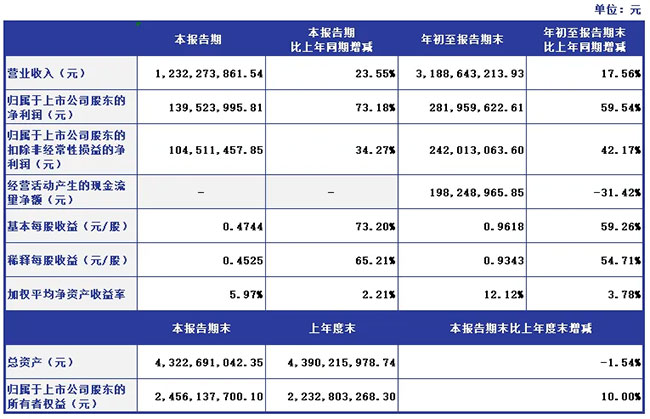 ÆäÖУ¬£¬£¬£¬£¬£¬£¬£¬µÚÈý¼¾¶ÈÓªÊÕ12.32ÒÚÔª£¬£¬£¬£¬£¬£¬£¬£¬Í¬±ÈÔöÌí23.55%£»£»£»£»£»£»£»¹éĸ¾»ÀûÈó1.40ÒÚÔª£¬£¬£¬£¬£¬£¬£¬£¬Í¬±ÈÔöÌí73.18%£»£»£»£»£»£»£»»ù±¾Ã¿¹ÉÊÕÒæ0.4744Ôª£¬£¬£¬£¬£¬£¬£¬£¬Í¬±ÈÔöÌí73.20%¡£¡£¡£¡£¡£¡£¡£¡£